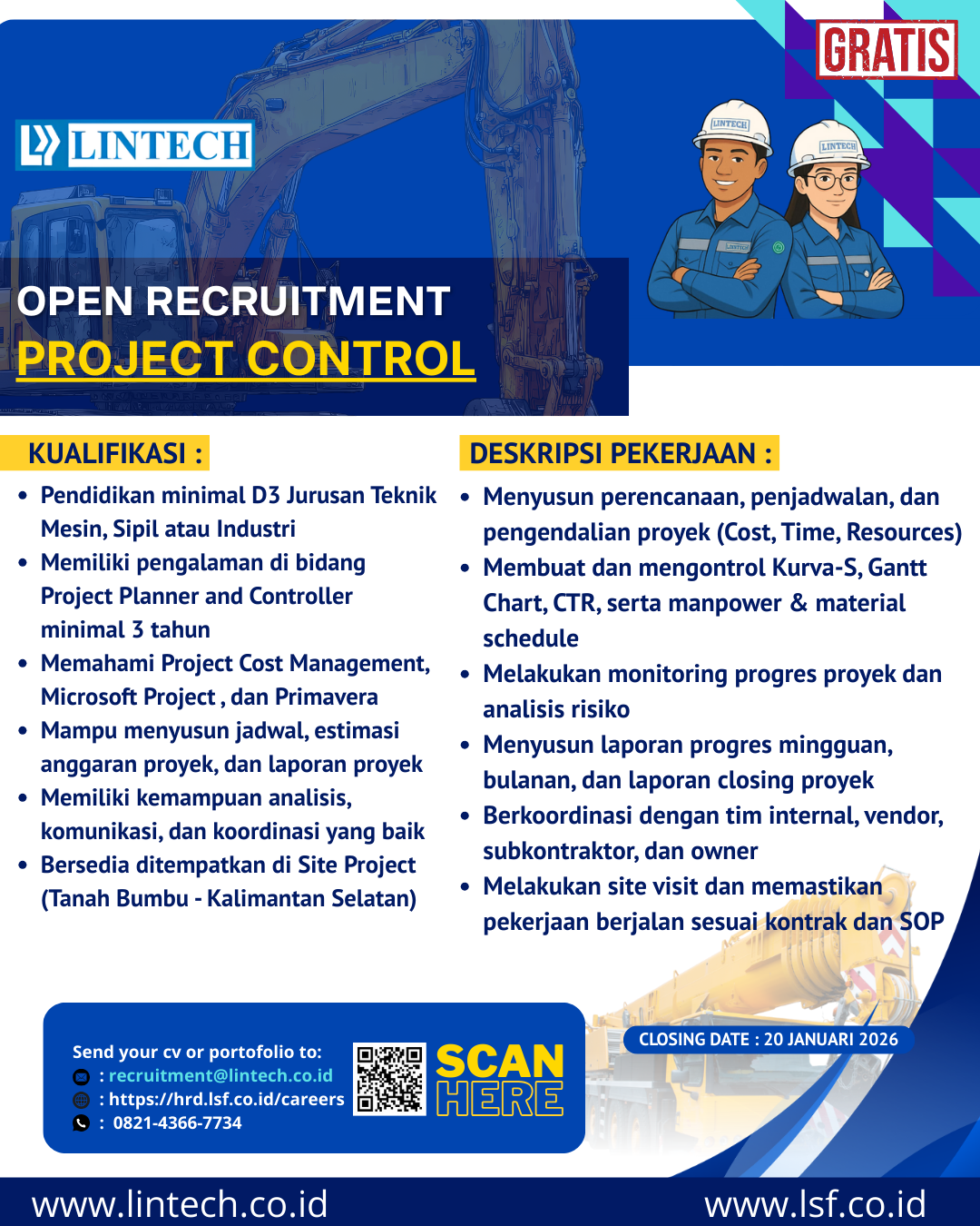 2. Memiliki pengalaman di bidang Project Planner and Controller min. 3 tahun.