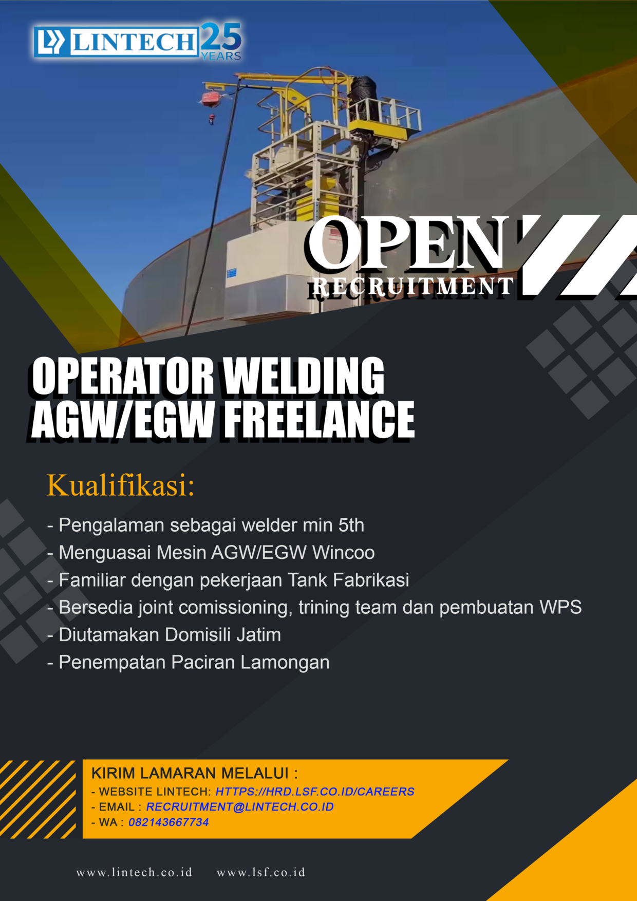 Maaf Lowongan Pekerjaan OPERATOR WELDING AGW/EGW FREELANCE sudah CLOSED
